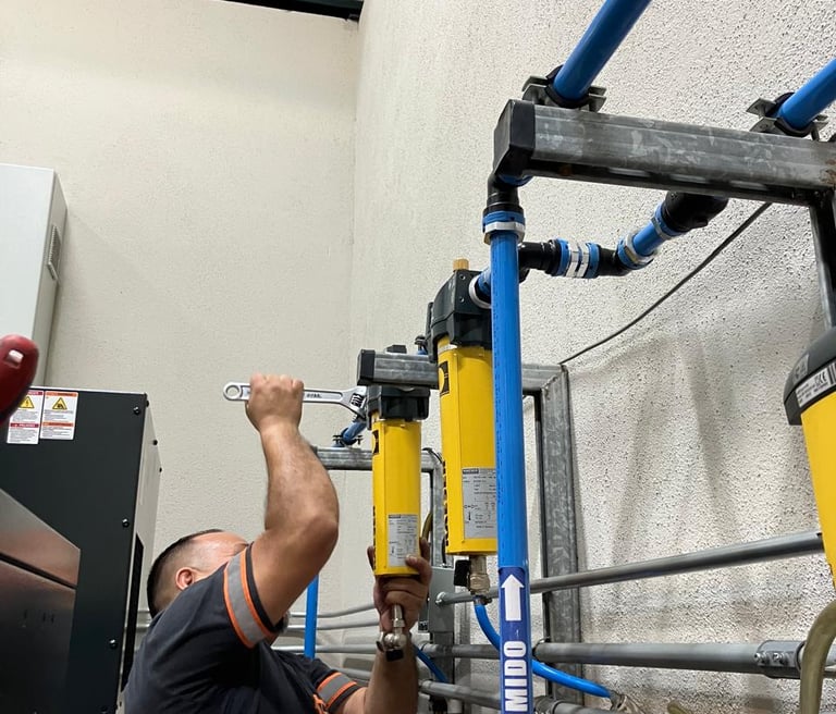 Especialistas en sistemas de aire comprimido, asegurando que cada componente funcione sin fallas para mantener la producción activa.